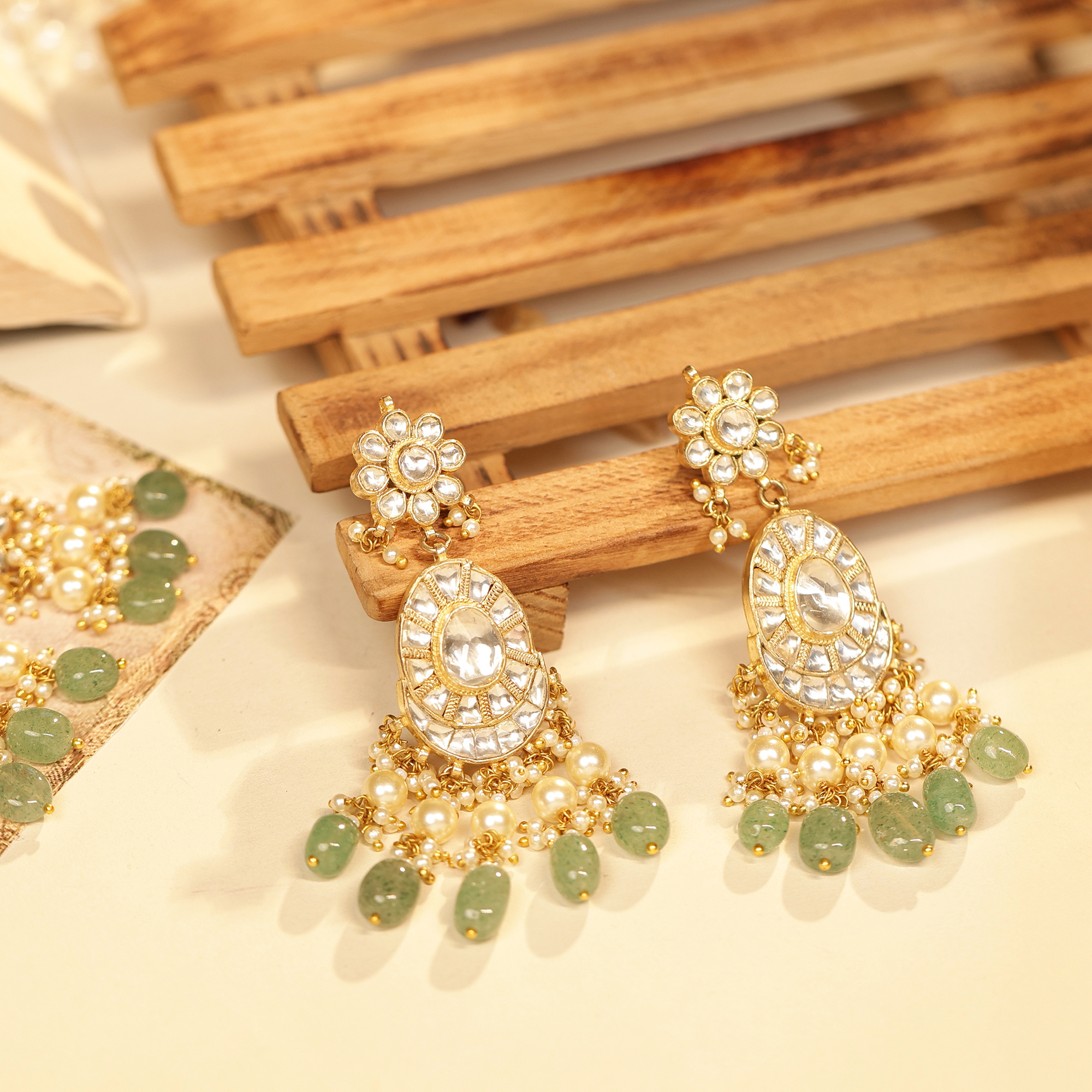 High-quality Jadau Kundan ensures a brilliant Polki-like shine.