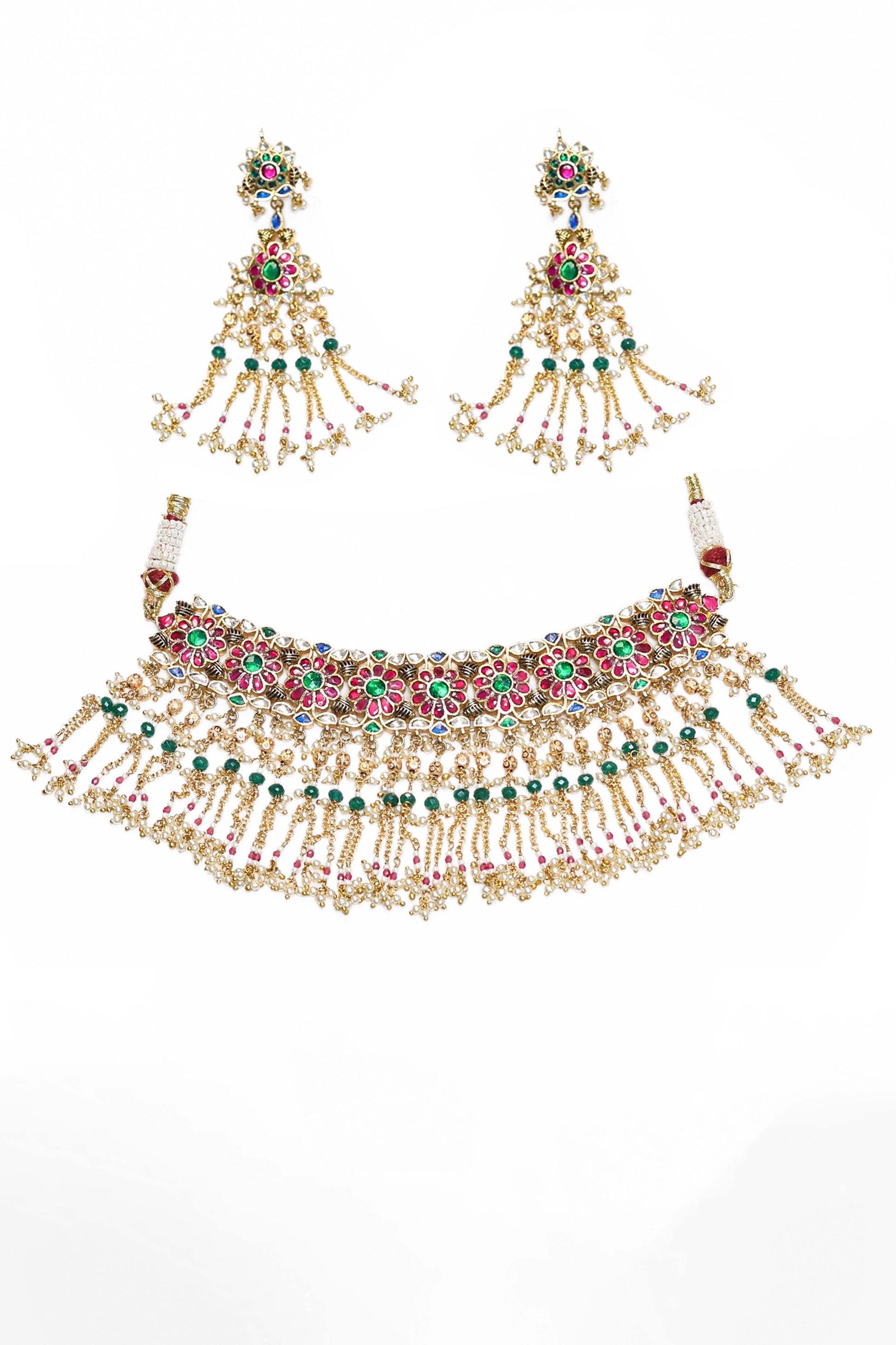 Contains : One Choker Necklace and One Pair of Long Statement Earrings
