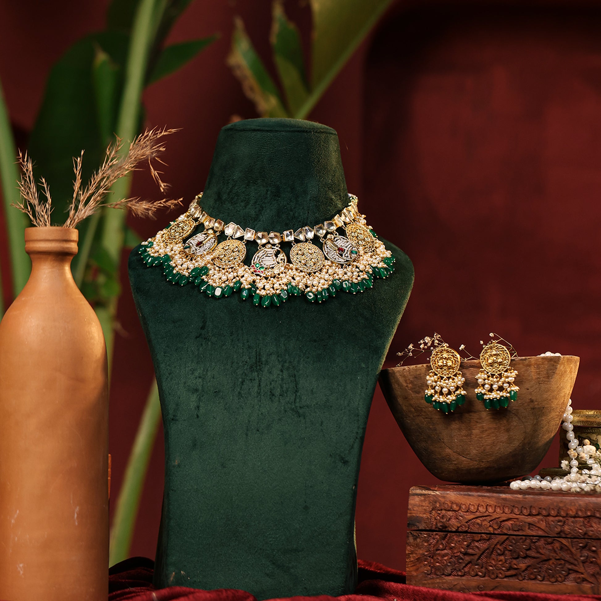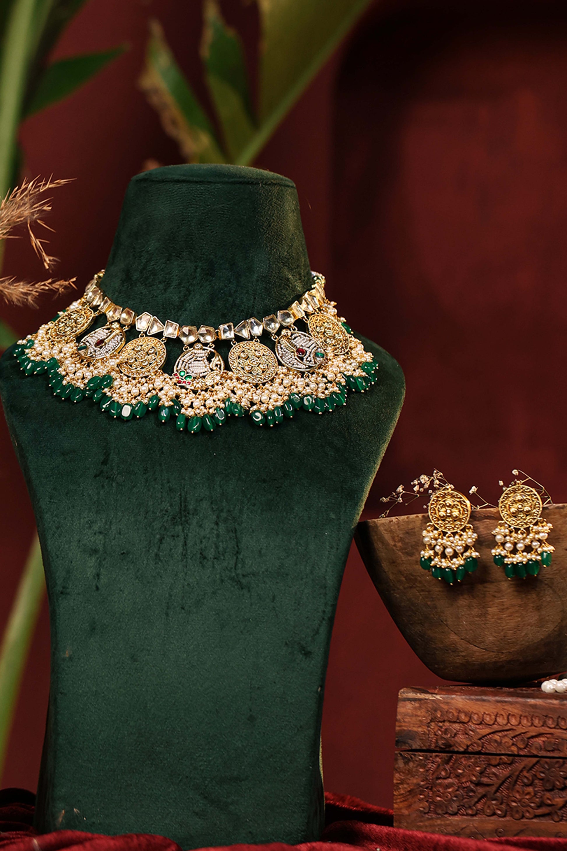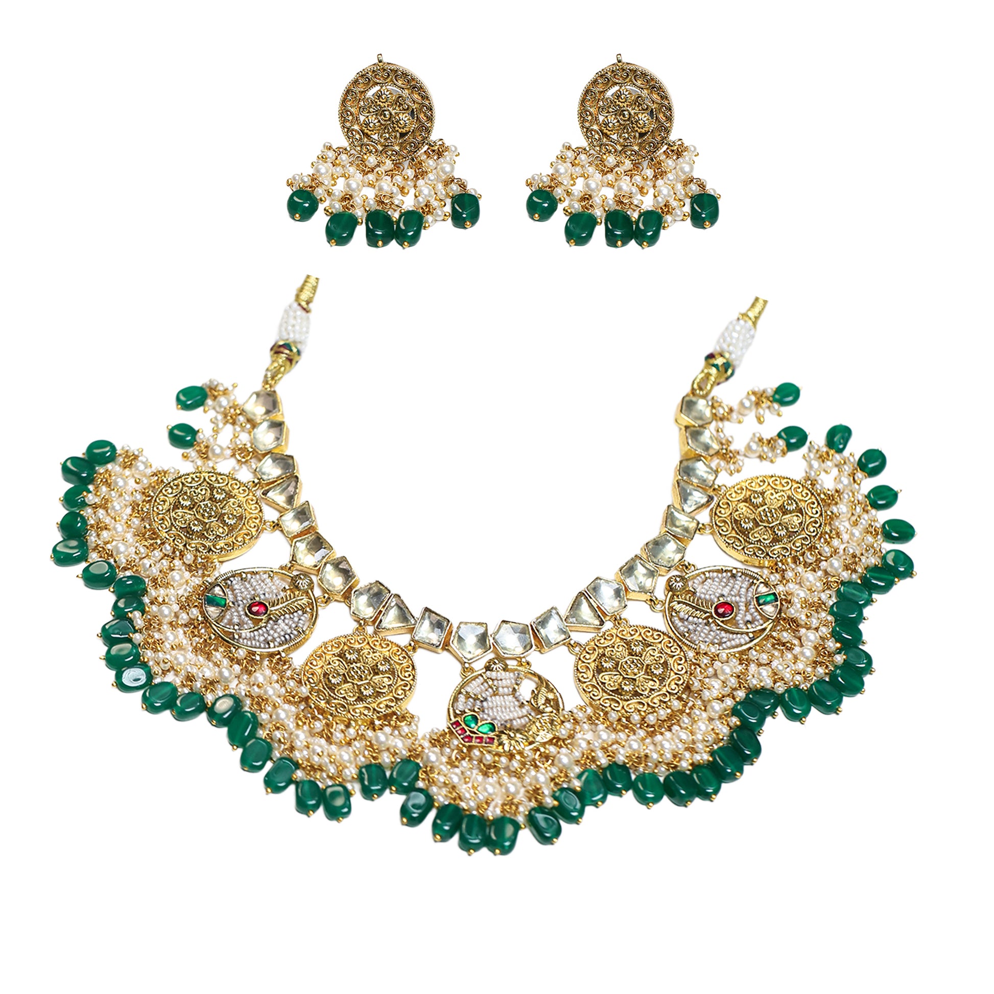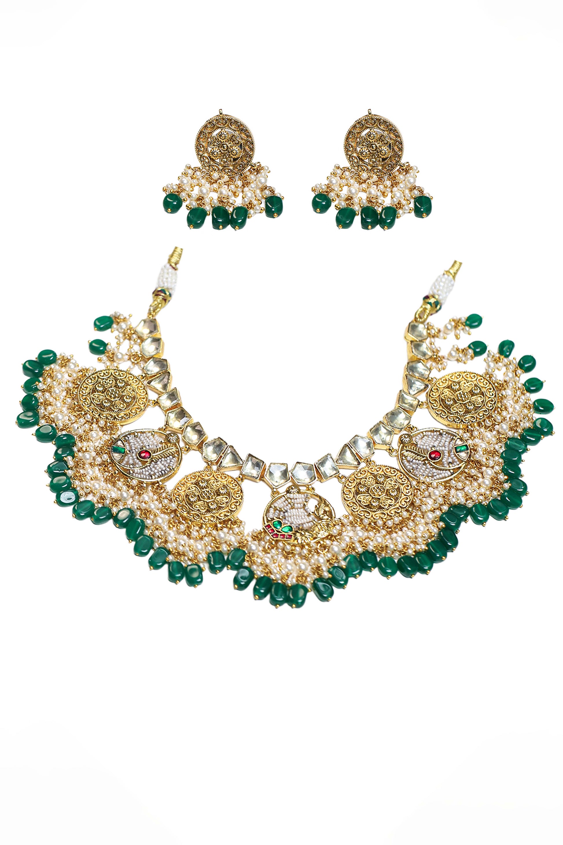 Stone : Semi-Precious Kundan Stones, Pearl Accents & Green Beads