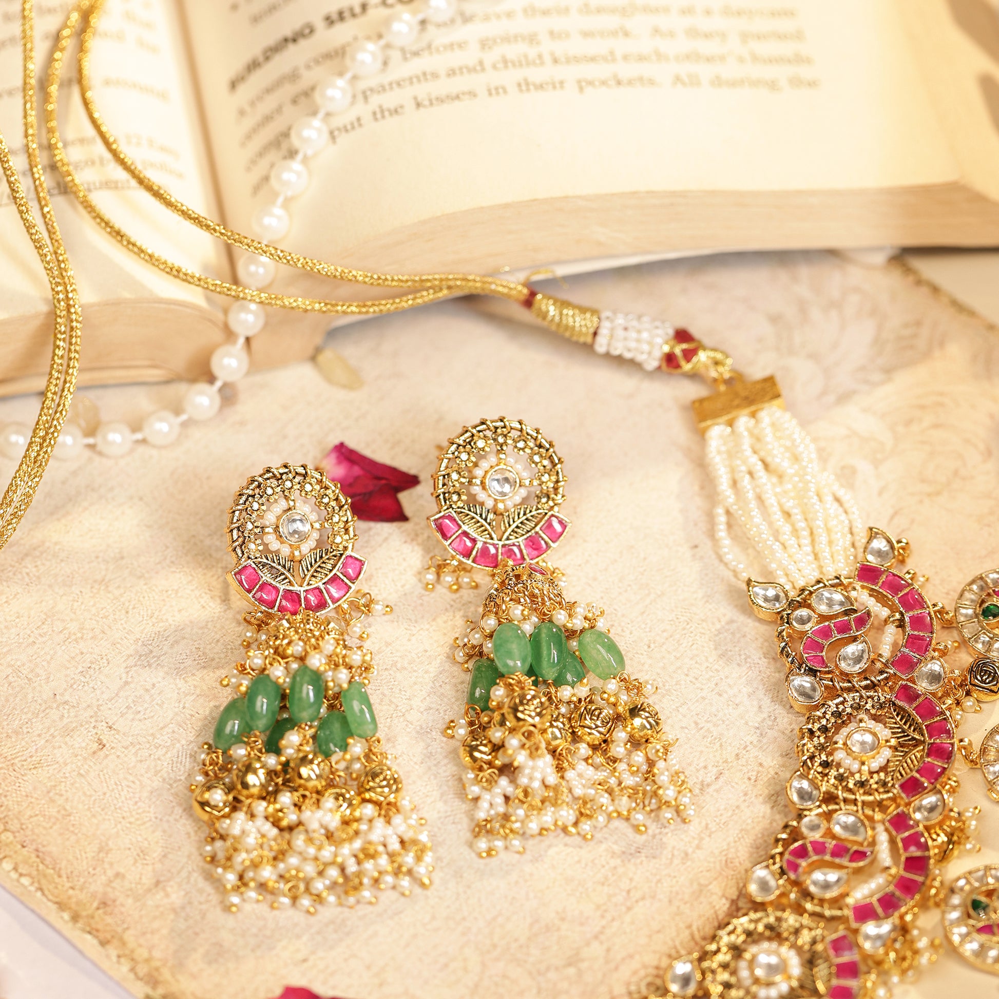 Stone : Semi-Precious Kundan Stones, Pearl Beads & Green Drops