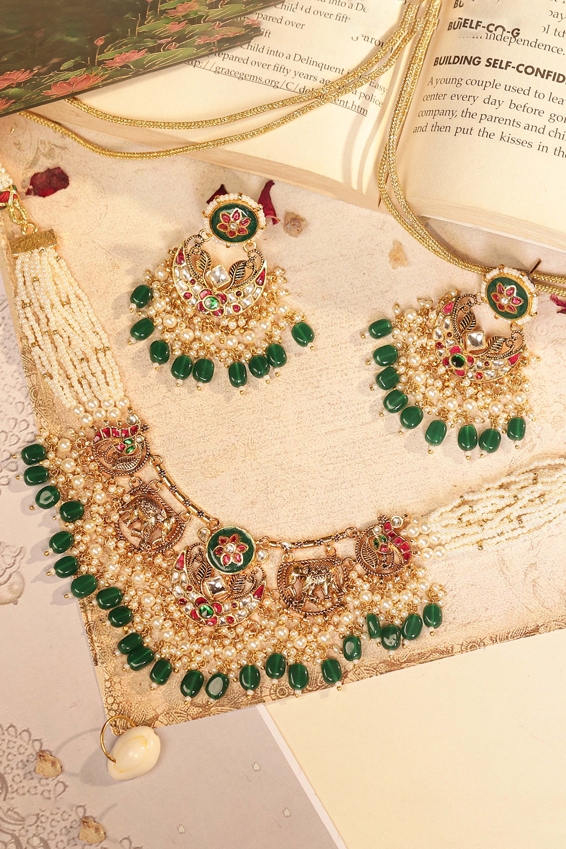 Stone Setting : Semi-Precious Kundan Stones, Pearl Layers & Green Beads