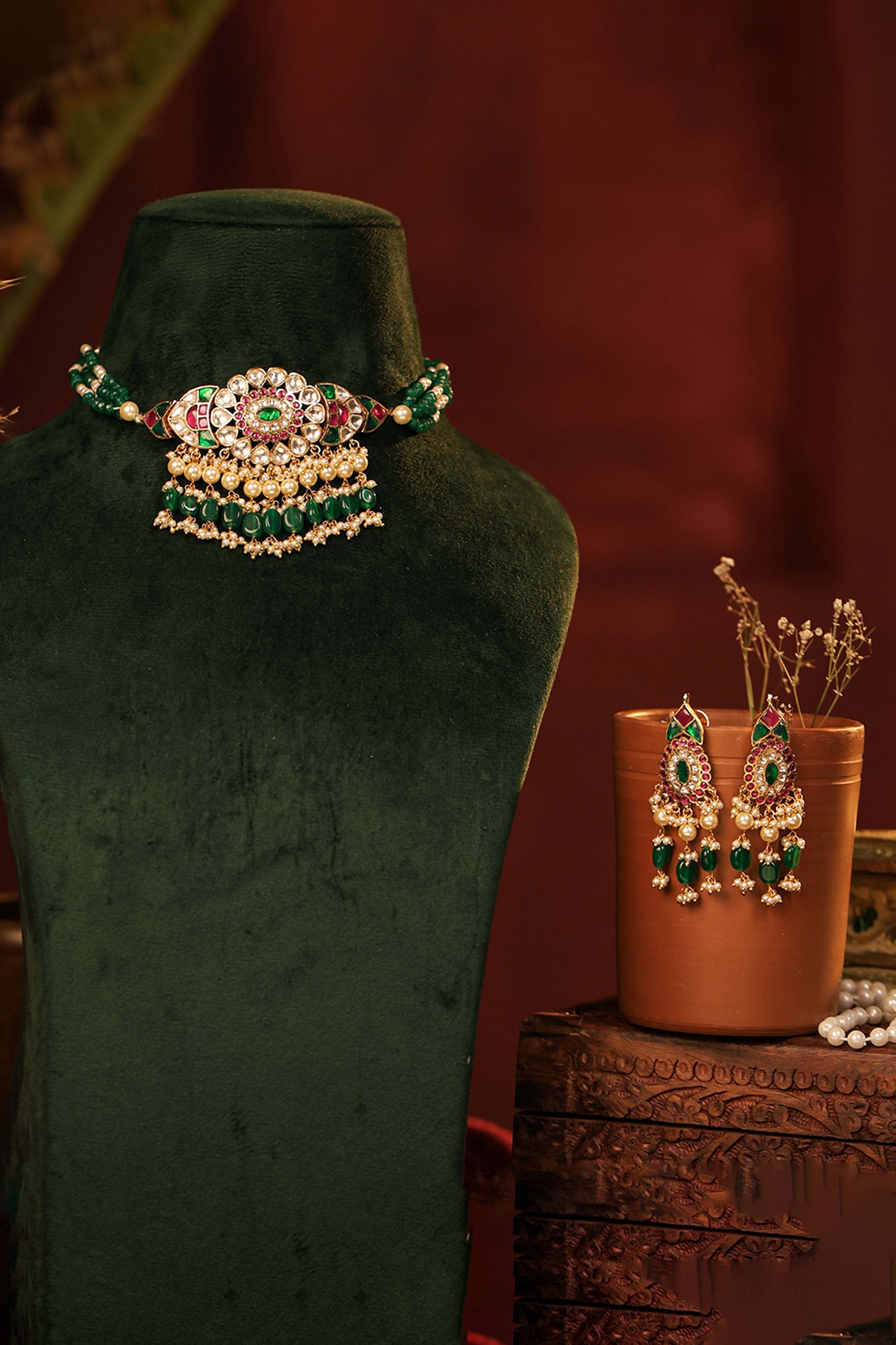 Tarini Multicolor Kundan Festive Choker Necklace Set for Weddings & Celebrations
